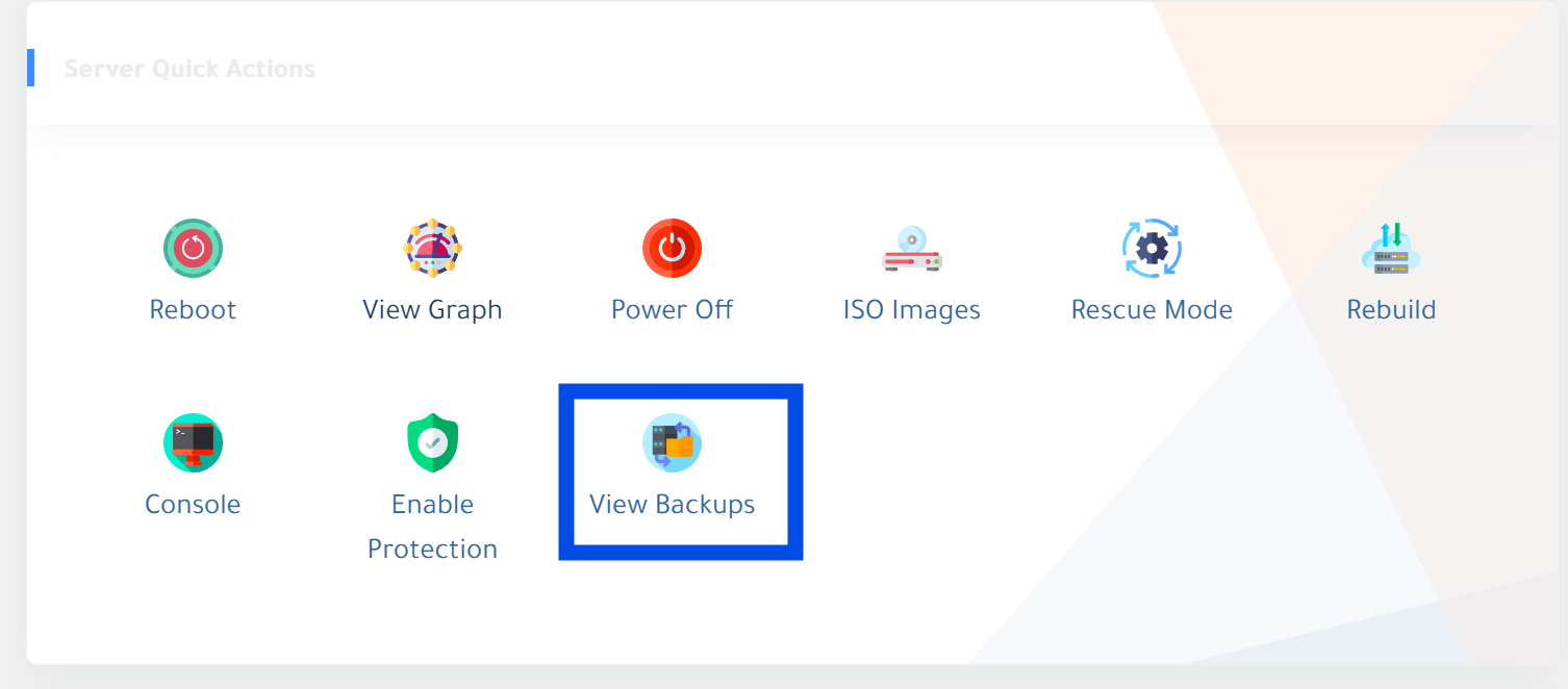 First, you need to access the backup settings for your server. From your main server management dashboard, locate the "Server Quick Actions" area. Among the various options available for managing your server, you will find the "View Backups" icon. Click on it to proceed.