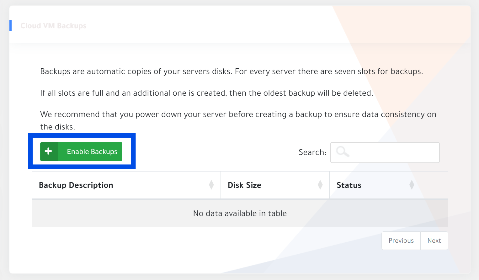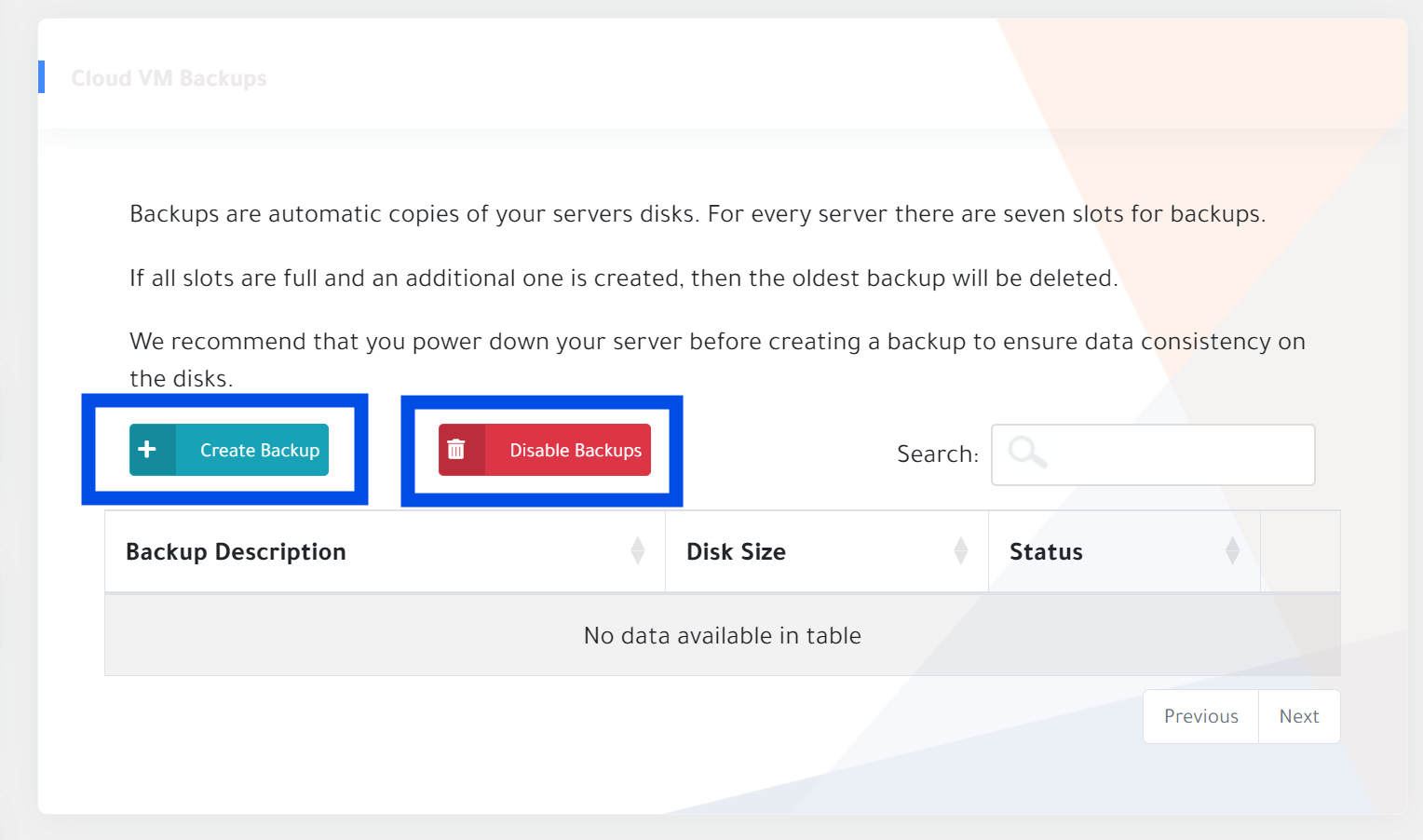 • Disable Backups: If you no longer need the backup service, you can use this option to turn it off.